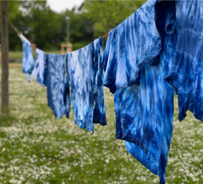 Pottasche gaben und dann alles trockneten (Bild 1). Was recht kompliziert klingt, war auch in der Tat nicht einfach. So ging dies einher mit zerbrochenen Pipetten, ätzenden Flüssigkeiten an Orten, an denen man sie eigentlich nicht haben will und anderen Schwierigkeiten. Doch schließlich war unsere Farbstoffherstellung erfolgreich, sodass wir weiße T-Shirts damit färben (Bild 2) und uns so ein Andenken an diese besonderen Tage selbst herstellen konnten. Jedoch ließen sich nicht nur