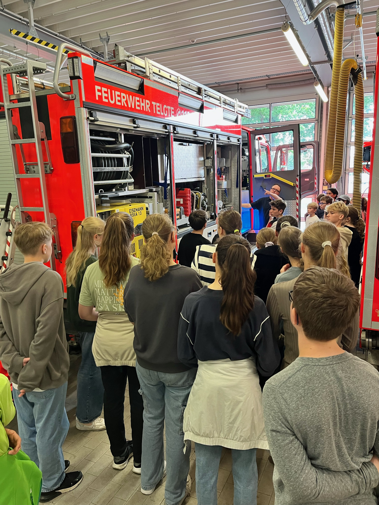 Für eine 7. Klasse ging es zur Feuerwehr Telgte, um sich im Rahmen des im Unterricht behandelten Themas „Brände und Brandschutz“ vor Ort die Arbeit der Freiwilligen Feuerwehr Telgte anzusehen. Vielen Dank hier an Herrn Franz, der sich viel Zeit für die Erklärungen nahm und den Schülerinnen und Schülern ihre Fragen beantwortete.