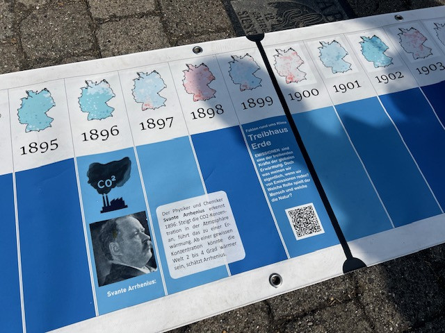 Am Freitag den 07. Juni konnte in den großen Pausen auf dem Schulhof ein 27m langer Klimazeitstrahl erkundet werden. Das Bodenbanner zeigt blaue und rote Jahresstreifen, die sogenannten warming stripes, die der britische Klimawissenschaftler Ed Hawkins entwickelt hat, um die fortschreitende Erderhitzung mittels einer Farbskala verständlich und anschaulich zu machen. Anhand des Verlaufs von blauen zu roten Streifen wird sofort begreiflich, wie rasant die durchschnittliche globale Temperatur von 1850 bis 2018 – besonders in den letzten drei Jahrzehnten – angestiegen ist. Ganz kurzfristig wurde uns der Zeitstrahl vom Fairtrade Verein Telgte zur Verfügung gestellt. Wir sagen herzlichen Dank.