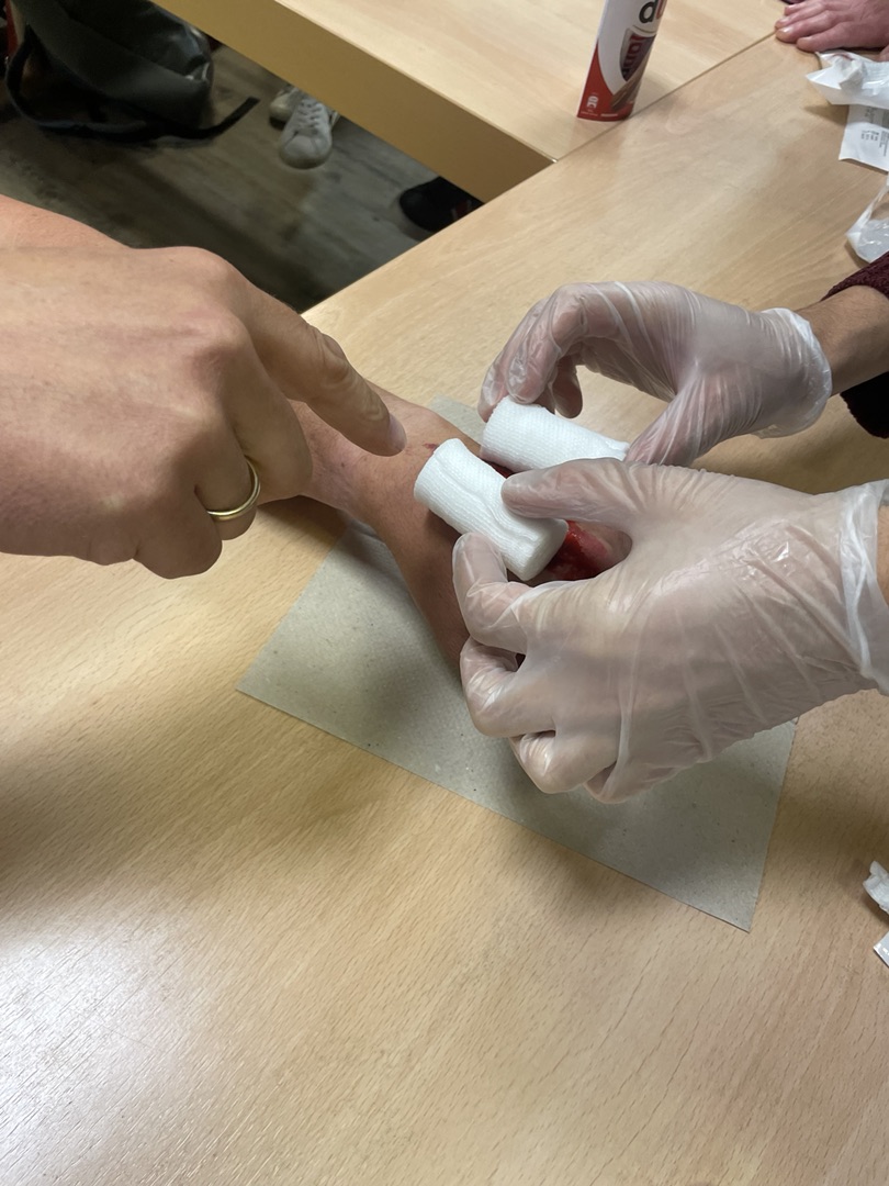 Nicht nur die Teilnehmer*innen des Schulsanitätsdienstes engagierten sich für die Sicherheit der Schule, auch die Lehrer besuchten einen Erste-Hilfe Kurs, um sich weiterzubilden.