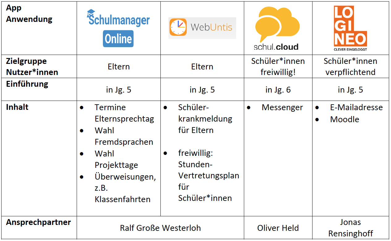 Übersicht der am MSMG verwendeten Apps und Anwendungen